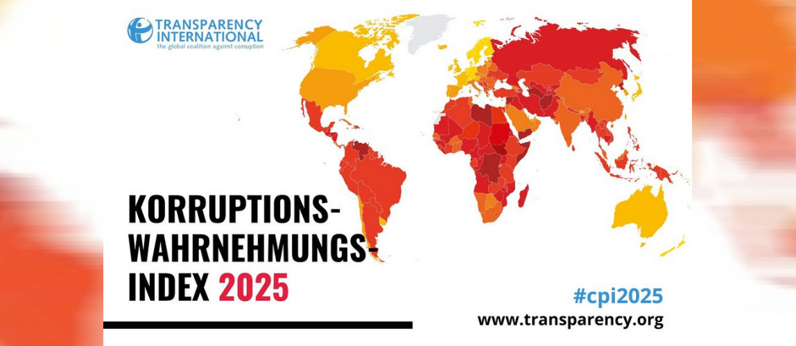 Transparency International hat heute den Korruptionswahrnehmungsindex 2025 (Corruption Perceptions Index, CPI) veröffentlicht. Der jährlich erscheinende Index ist der weltweit bekannteste Korruptionsindikator. Er umfasst 182 Staaten und Gebiete und bewertet den Grad der in Politik und Verwaltung wahrgenommenen Korruption. Der Meta-Index beruht auf der Einschätzung von Expert:innen sowie Führungskräften.Auf einer Skala von 0 (hohes Maß an wahrgenommener Korruption) bis 100 (keine wahrgenommene Korruption) erreicht Dänemark von allen Ländern mit 89 Punkten den höchsten Score und beansprucht zum achten Mal in Folge im weltweiten Ranking den Spitzenplatz für sich. Es folgen Finnland und Singapur. Die letzten Plätze belegen Südsudan und Somalia. Korruption nimmt weltweit zu. Vor zehn Jahren gab es noch zwölf Länder mit über 80 Punkten, heute sind es nur noch fünf. Der globale Durchschnitt hat dieses Jahr mit 42 Punkten den tiefsten Wert seit über zehn Jahren erreicht. Deutliche Rückschritte sind mittlerweile auch in Demokratien zu verzeichnen, die im Vergleich zu autoritären Staaten bessere Schutzmechanismen gegen Korruption haben.
